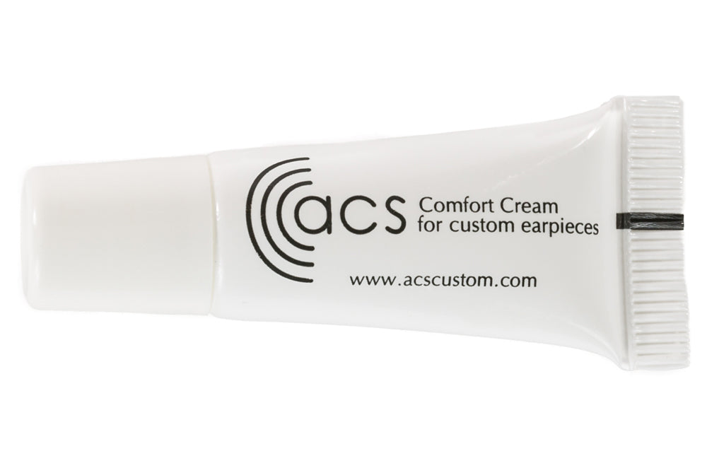 Replacement tube of comfort cream to aid insertion of your ACS custom earplugs or in-ear monitors into the ear.